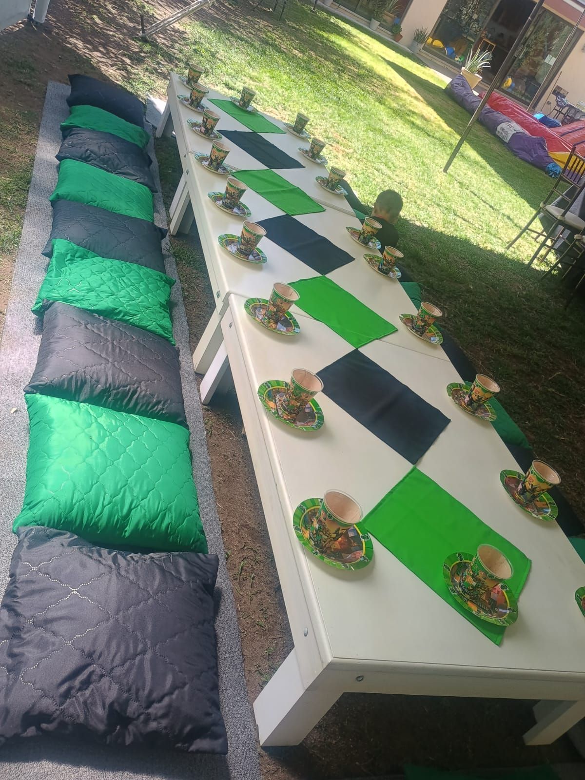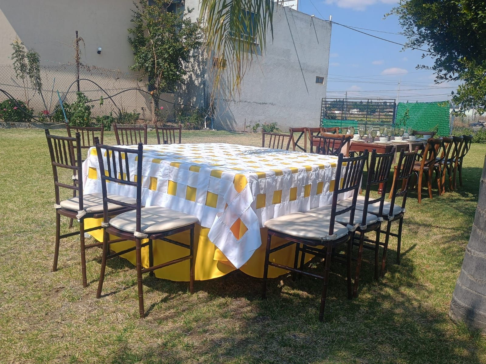 - Mesas: Mesa rectangular 2.35*75, Mesa cuadrada 1.50*1.50, Mesa redonda 1.50 diámetros, Mesa vintage 2.35*1.20, Mesa periquera 60*60, Mesa pícnic 1.20*90.cm.